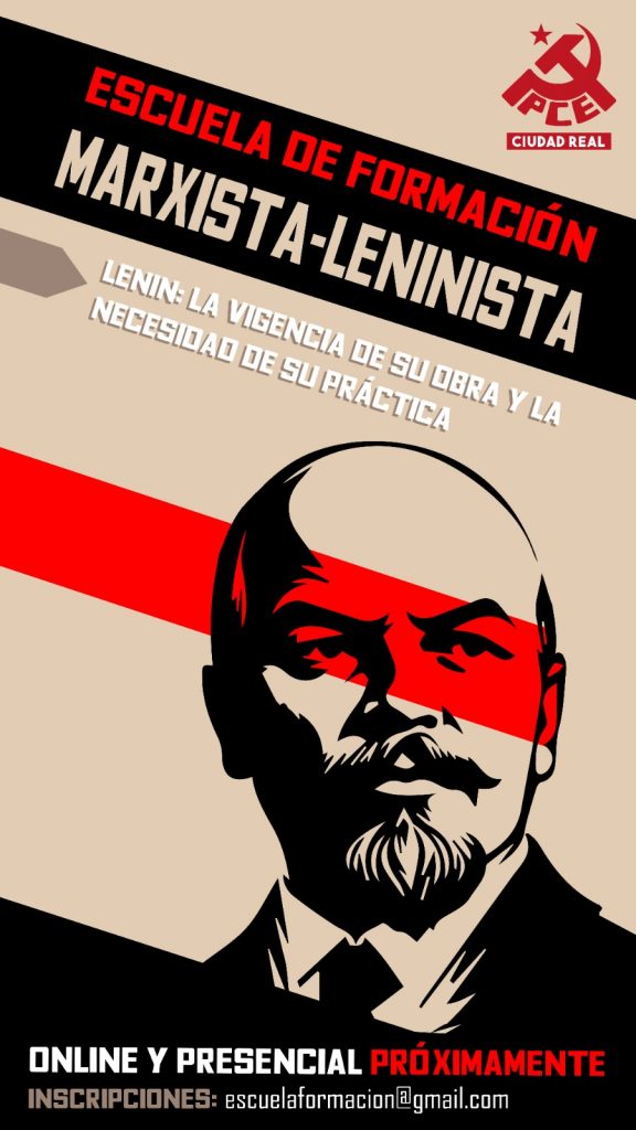 Desde el Partido Comunista en Ciudad Real impulsamos la II Escuela de Formación marxista-leninista, centrada en la vigencia del pensamiento de V.I. Lenin y la necesidad de su práctica en la actualidad. Estas jornadas de formación buscan promover la formación marxista no sólo de la militancia del propio PCE -y la UJCE- sino también de […]