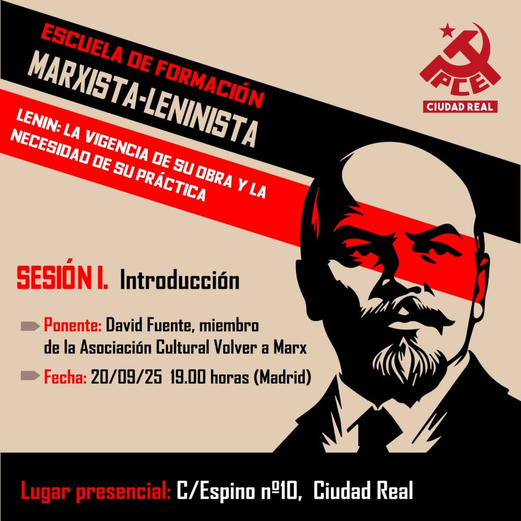 Desde el Partido Comunista en Ciudad Real impulsamos la II Escuela de Formación marxista-leninista, centrada en la vigencia del pensamiento de V.I. Lenin y la necesidad de su práctica en la actualidad. Estas jornadas de formación buscan promover la formación marxista no sólo de la militancia del propio PCE -y la UJCE- sino también de […]